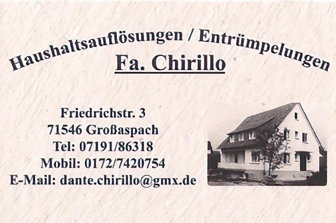 Chirilo Haushaltsauflösungen und Entrümpelungen ist Ihr verlässlicher Partner für Haushaltsauflösungen in Aspach, Ludwigsburg und allen umliegenden Städten. Mit jahrelanger Erfahrung und einem professionellen Team bieten wir Ihnen umfassende Dienstleistungen rund um die Auflösung von Haushalten, Entrümpelungen und Umzüge. Unsere Expertise erstreckt sich auf Privat- und Firmenkunden, die auf schnelle, gründliche und stressfreie Lösungen setzen.